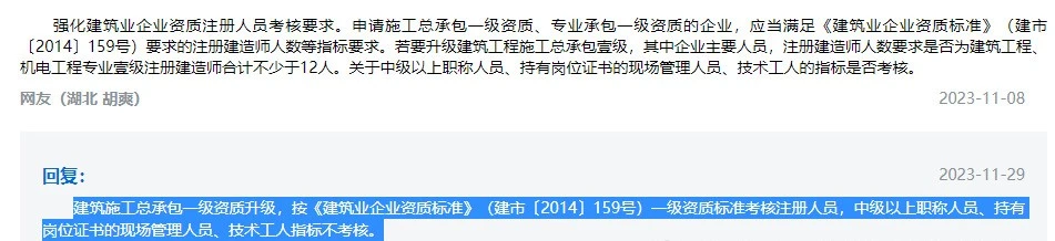 住建部《关于进一步加强建设工程企业资质审批管理工作的通知》(建市规〔2023〕3号)明确: