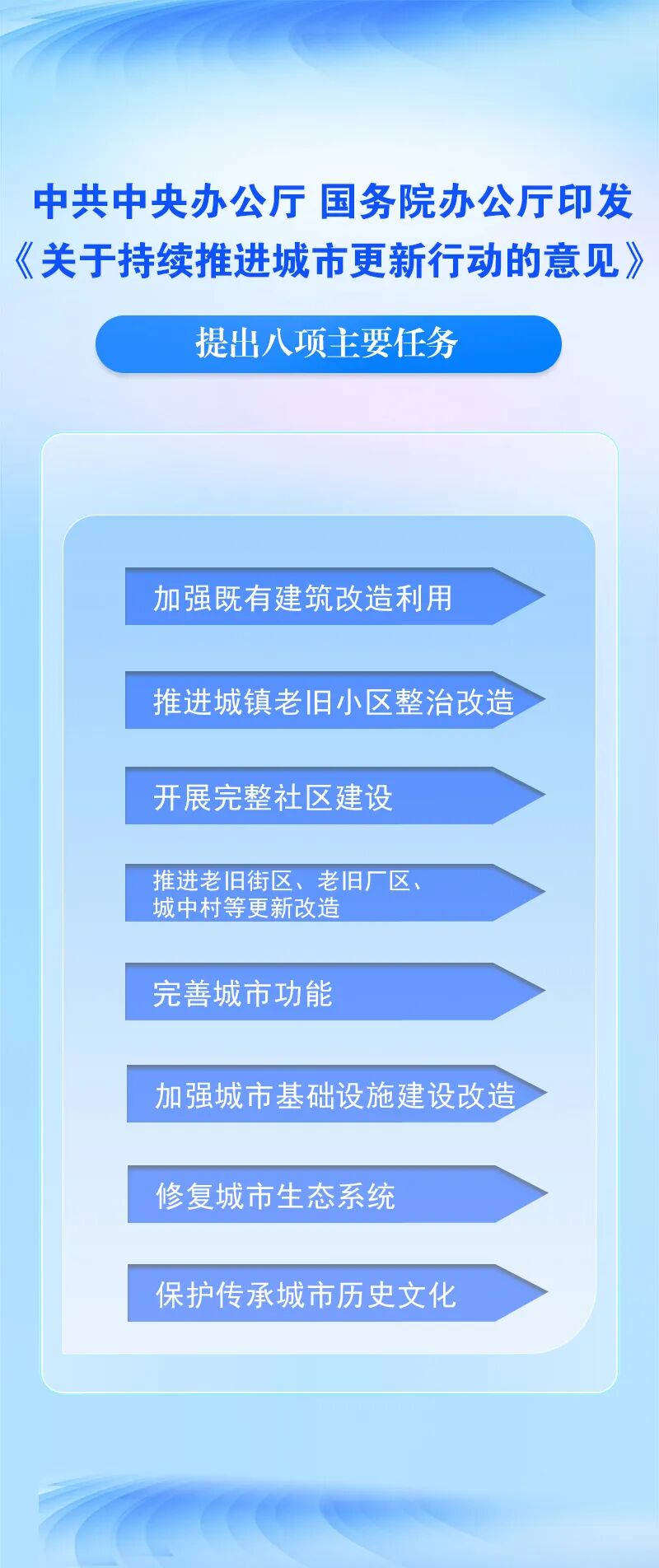 实施城市更新行动,是推动城市高质量发展、不断满足人民美好生活需要的重要举措。为持续推进城市更新行动,经党中央、国务院同意,现提出如下意见。